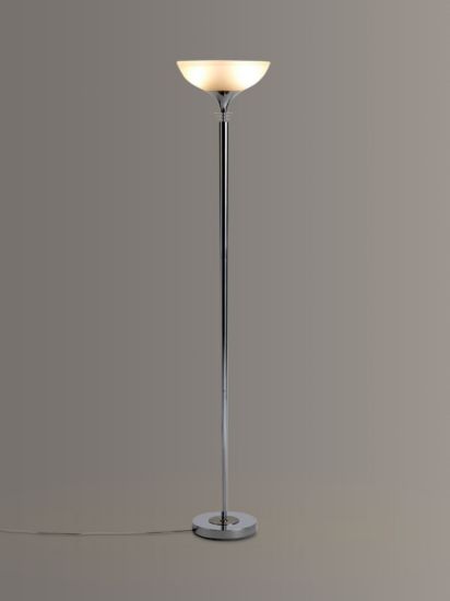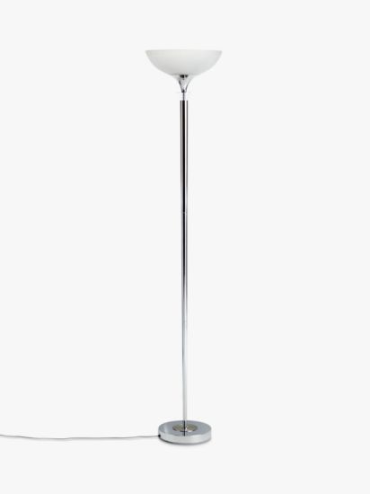 Bringing a more modern feel to the traditional uplighter, our floor lamp is designed with a slimline, yet sturdy metal frame. The frosted glass shade enhances a warm wash of light that can be dimmed using the dimmer switch in the floor cable. Thanks to its minimalist design, this functional floor lamp is ideal for your cosy reading corner, as well as smaller spaces at home.