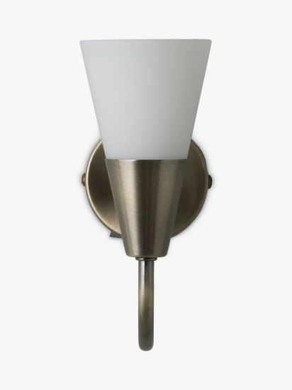 This excellent value, single-arm wall light is made with a frosted glass, cone-shaped shade. It offers a warm wash of light.