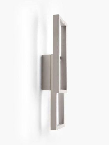 Designed with overlapping rectangular shapes, this modern light offers an eye-catching and abstract lighting solution. The integrated LED strips illuminate the frame, creating a glowing wash of light up and down the wall. Finished with textured paint, this sculpted piece is ideal for contemporary spaces.