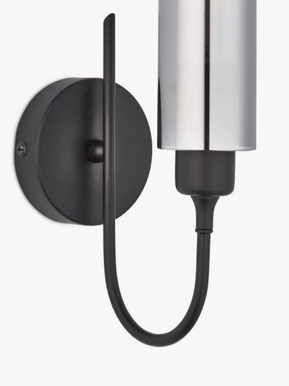 • Refined simplicity, this single arm wall light features a smoke lustre glass shade on a modern matt black plate. Ideal for creating an inviting ambience in your space, at a great price.