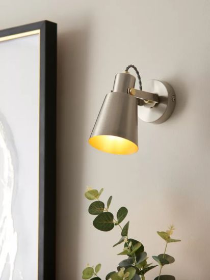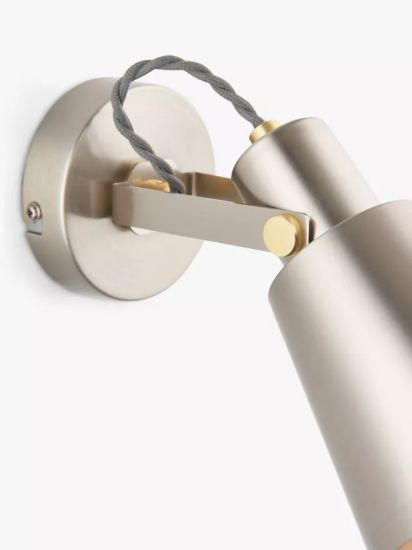 • Create a modern industrial look with a bright, directional light output. The is a modern take on industrial heritage, satin steel complimented with touches of brushed brass. The twisted fabric cable softens the overall look.